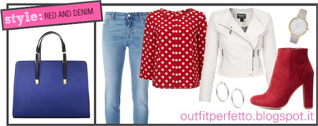 Un outfit più giovanile, adatto anche alle prime ore del mattino e ad un look casual, può essere composto con una borsa blu da abbinare ad un paio di jeans, una blusa sui toni del rosso ciliegia o del bordeaux, stivaletti in tinta ed una giacca bianca o color panna, come una grintosa biker jacket in ecopelle.